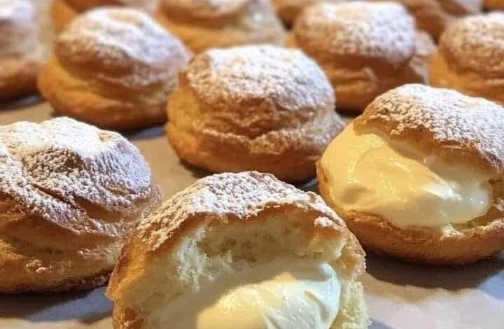 Famous Cream Puffs are a delightful dessert, with a delicate, light, and crispy shell filled with a rich, smooth, and creamy vanilla pastry cream. The contrast between the airy choux pastry and the luscious cream filling creates a perfect balance of textures. These cream puffs are both elegant and indulgent, making them a favorite at parties, tea time, or as an impressive homemade dessert.