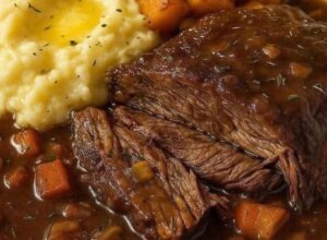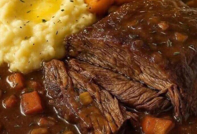 Introduction Slow-cooked pot roast is a timeless comfort dish loved for its tender beef, rich gravy, and creamy mashed potatoes. The long, gentle cooking allows the meat to become melt-in-your-mouth soft, while vegetables and broth create a luscious sauce. This recipe is perfect for family dinners, Sunday gatherings, or any time you crave hearty, homestyle food. --- Origin Pot roast traces its roots to European immigrants in North America, particularly German and Jewish communities, who brought “braising” techniques with them. By the 19th century, braised beef with vegetables became a staple of American home cooking, especially in colder months. It evolved into the “Sunday pot roast,” symbolizing warmth, hospitality, and family togetherness. --- Cultural Significance In many households, pot roast represents tradition and shared meals. It’s often passed down as a cherished family recipe, prepared for special occasions or as the centerpiece of a cozy weekend dinner. Its slow preparation encourages lingering at the table and enjoying good company. --- Ingredients (Serves 6) For the Pot Roast: 3–4 lb (1.4–1.8 kg) chuck roast or brisket 2 tbsp vegetable or olive oil 1 large onion, sliced 3 cloves garlic, minced 4 carrots, cut into large chunks 3 celery stalks, cut into chunks 2 cups beef broth (low-sodium) 1 cup dry red wine (optional, or use more broth) 2 tbsp tomato paste 2 sprigs fresh thyme (or 1 tsp dried) 1 sprig rosemary (or ½ tsp dried) 2 bay leaves Salt and freshly ground pepper, to taste For the Mashed Potatoes: 2 ½ lb (1.1 kg) russet or Yukon Gold potatoes, peeled & cubed 4 tbsp unsalted butter ½–¾ cup warm milk or cream Salt & pepper, to taste For the Gravy: 2 tbsp all-purpose flour or cornstarch (for thickening) --- Optional Additions Mushrooms, parsnips, or turnips for extra flavor A splash of balsamic vinegar for depth Fresh parsley or chives for garnish Substitute sweet potatoes for part of the mash for a twist --- Tips for Success Sear the beef well before slow cooking to lock in flavor. Cook low and slow (6–8 hours on LOW in a slow cooker or 3–4 hours in the oven). Let the roast rest for 10–15 minutes before slicing to keep it juicy. Warm your milk/cream before adding to the potatoes to keep them fluffy. --- Instructions 1. Sear the Meat: Pat roast dry; season with salt and pepper. Heat oil in a large skillet or Dutch oven and brown on all sides (3–4 min each). 2. Prepare Vegetables: Place onion, carrots, celery, and garlic in the slow cooker (or Dutch oven). 3. Deglaze: Add wine (or broth) to the pan, scraping browned bits. Stir in tomato paste and broth. 4. Assemble: Place seared beef on vegetables, add herbs and bay leaves, then pour in the liquid. 5. Cook: Slow cooker: Cover, cook on LOW 6–8 hours (or HIGH 3–4). Oven: Cover tightly, bake at 325°F (160°C) for ~3–4 hours. 6. Make Gravy: Remove beef and vegetables. Strain liquid, skim fat. Whisk flour or cornstarch with water, stir into hot liquid until thick. 7. Prepare Mashed Potatoes: Boil potatoes until tender (15–20 min). Drain, mash with butter, warm milk/cream, salt, and pepper until creamy. 8. Serve: Slice roast, pour gravy over, and plate with a generous scoop of mashed potatoes. Garnish with herbs if desired. --- Description Tender beef infused with herbs and wine is paired with velvety mashed potatoes and topped with a silky, savory gravy. Each bite balances richness, earthiness, and creaminess, making it the ultimate soul-warming dish. --- Nutritional Information (per serving, approx.) Calories: ~480 Protein: 35 g Carbohydrates: 28 g Fat: 24 g Fiber: 3 g Sodium: 640 mg (Values may vary based on ingredients and portion size.) --- Conclusion Slow-cooked pot roast with gravy over creamy mashed potatoes is more than a recipe — it’s an experience of comfort, patience, and reward. Its classic flavors and nourishing texture make it a reliable favorite for any home cook. --- Recommendation Pair with steamed green beans, roasted Brussels sprouts, or a simple garden salad. Serve with a bold red wine or sparkling water with lemon for balance. --- Embracing Healthful Indulgence Enjoy this hearty dish mindfully: savor moderate portions, accompany with colorful vegetables, and appreciate the nourishing, satisfying qualities of a well-prepared meal. With balance and fresh ingredients, pot roast can be both an indulgence and part of a wholesome lifestyle.