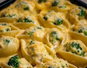 Stuffed pasta shells, or conchiglioni ripieni, originated in Italy, where they were traditionally filled with ricotta and spinach or meat and tomato sauce. Over time, this concept evolved globally, adapting to local tastes and ingredients. The American adaptation—stuffed shells with chicken, broccoli, and creamy sauces—reflects a fusion of Italian tradition and American comfort food, showcasing the creativity of home cooks who love combining convenience with indulgence.