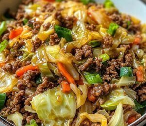 This Cozy Chinese-Style Ground Beef & Cabbage Stir Fry is the perfect comfort meal — warm, deeply savory, and ready in under 30 minutes. It combines tender ground beef, crisp cabbage, and aromatic garlic-ginger notes tossed in a glossy soy-based sauce. The result is a perfectly balanced meal that’s both nutritious and satisfying, offering a rich umami depth with just a hint of sweetness and tang. Ideal for busy weeknights, this stir fry transforms simple ingredients into a deeply flavorful and nourishing dish.