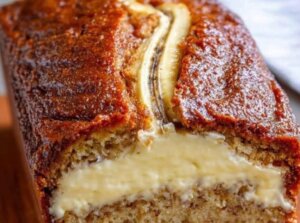 Banana bread is a symbol of home baking, warmth, and resourcefulness. Adding a cream cheese filling elevates the traditional recipe, reflecting how classic comfort foods continue to evolve while preserving their nostalgic appeal.
