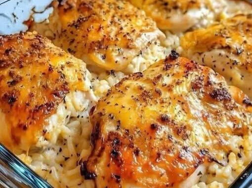 Juicy chicken breasts nestle into a bed of creamy, flavorful rice. Each forkful delivers savory goodness, while the hint of herbs and spices adds balance. It’s hearty, homey, and deeply satisfying.