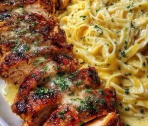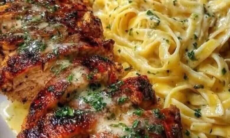 The Creamy Garlic Butter Chicken & Linguine in Alfredo Sauce is a timeless comfort dish that combines the richness of classic Italian cooking with everyday accessibility. Its creamy, garlicky perfection makes it a go-to for family dinners, romantic evenings, or anytime you crave a satisfying, soul-warming meal.