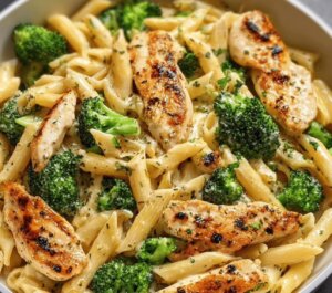 Creamy Garlic Chicken & Penne is a cozy, comforting pasta dish where juicy chicken, tender broccoli, and perfectly cooked penne are coated in a rich, silky garlic cream sauce. It’s simple enough for a weeknight dinner yet delicious enough to feel like a special treat.
