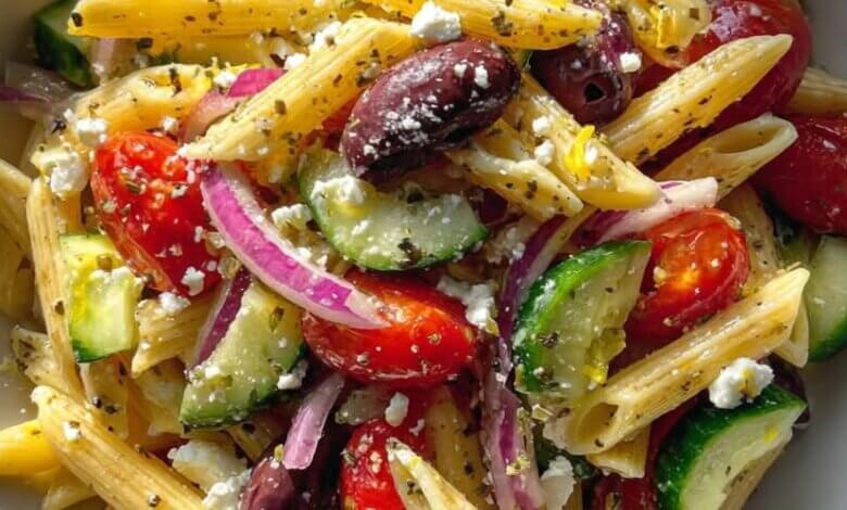 The dish is inspired by the classic Greek salad (Horiatiki), which traditionally features fresh vegetables, olives, and feta cheese dressed simply with olive oil, oregano, and lemon. Over time, pasta was introduced to create a more filling meal while retaining the authentic Greek flavors. Greek cuisine celebrates freshness, balance, and simplicity, and this pasta salad embodies those principles, making it a popular dish across cultures for potlucks, picnics, and family meals.