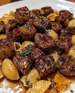 Garlic Butter Steak Bites & Creamy Parmesan Shells is the ultimate comfort-meets-luxury meal — fast enough for a weeknight, fancy enough for guests. It highlights the beauty of simple ingredients elevated through thoughtful cooking and flavor harmony.