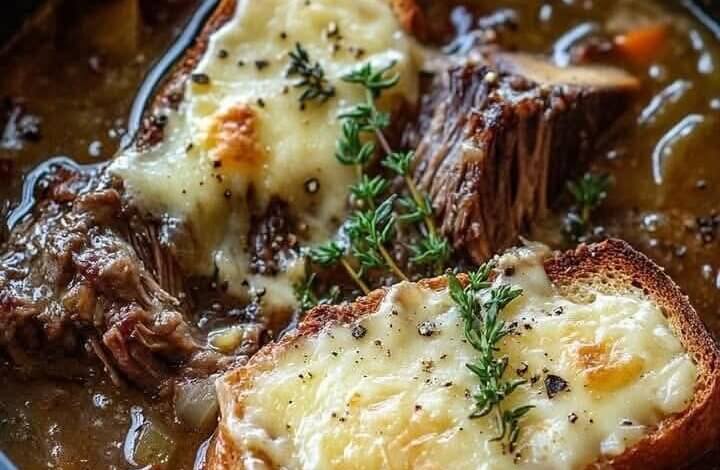 French Onion Short Rib Soup with Gruyère Toast merges the soulful warmth of classic French onion soup with the rich, luxurious tenderness of braised short ribs. Slow-cooked onions build sweetness, short ribs deepen the broth, and a crisp, cheesy Gruyère toast finishes the dish with a decadent flourish. It’s a comforting yet elevated recipe perfect for chilly days or special gatherings.