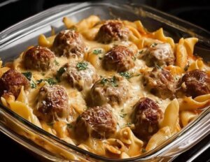 Le gratin de nouilles aux boulettes de viande suédoises est une rencontre savoureuse entre deux classiques : les boulettes scandinaves fondantes et un gratin de pâtes crémeux. C’est le plat parfait pour un repas convivial, à mi-chemin entre le “comfort food” nordique et la cuisine familiale française.