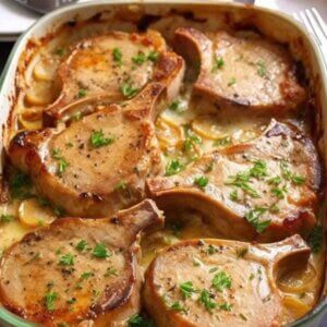 Pork chops with baked potatoes is a hearty, soul-warming meal that blends juicy, pan-seared or oven-baked pork with the earthy comfort of crispy-skinned potatoes. It’s simple enough for a weekday supper but satisfying enough to serve to guests, offering a balance of savory richness and rustic charm.