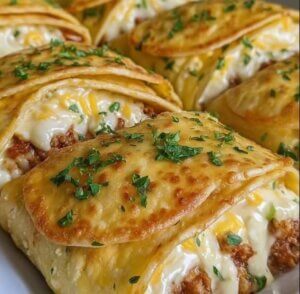 These Loaded Cheesy Pocket Tacos are golden, crispy on the outside, and oozing with melted cheese inside. Each bite delivers savory spiced beef, soft tortillas, gooey cheese, and a burst of fresh toppings. They’re hearty, satisfying, and perfect as a meal or appetizer.