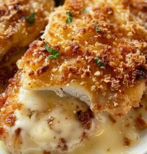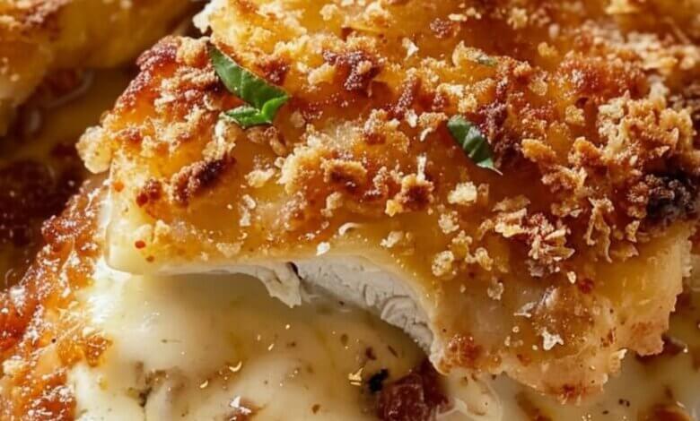 5. Bake: Preheat oven to 400°F (200°C). Bake chicken for 10 minutes, then switch to broil for 2–3 minutes until cheese is bubbly and crust is golden brown.