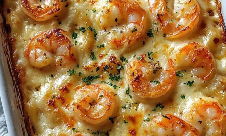 5. Bake 10–12 minutes, or until shrimp are pink and the topping is golden.