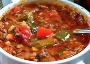 Stuffed peppers have deep roots in global cuisine, appearing everywhere from Mediterranean dolma to Eastern European “golabki” and Latin American “pimientos rellenos.” The American-style stuffed pepper, typically filled with seasoned meat, rice, and tomato sauce, gained popularity in the mid-20th century as a thrifty yet hearty family meal. Turning this dish into a soup is a relatively modern twist, born out of home kitchens seeking a faster, one-pot version of the classic — proving how timeless comfort foods evolve while keeping their soul.